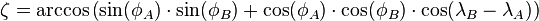 Die Strecke wird zuerst als Orthodrome - also als kürzeste Verbindung zwischen zwei Punkten auf einer Kugeloberfläche - im Bogenmaß berechnet (Zentriwinkel):